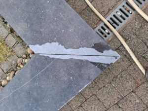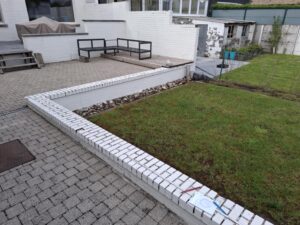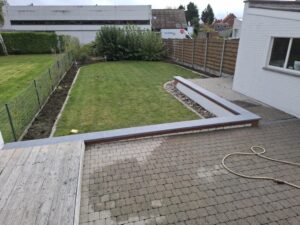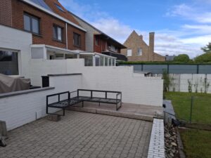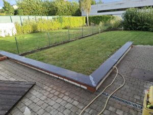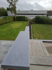 De rollaag van de tuinmuur was goed aan het afbrokkelen doorheen de jaren. De klant vroeg om deze af te breken en de tuinmuren te voorzien van arduinen dekstenen.