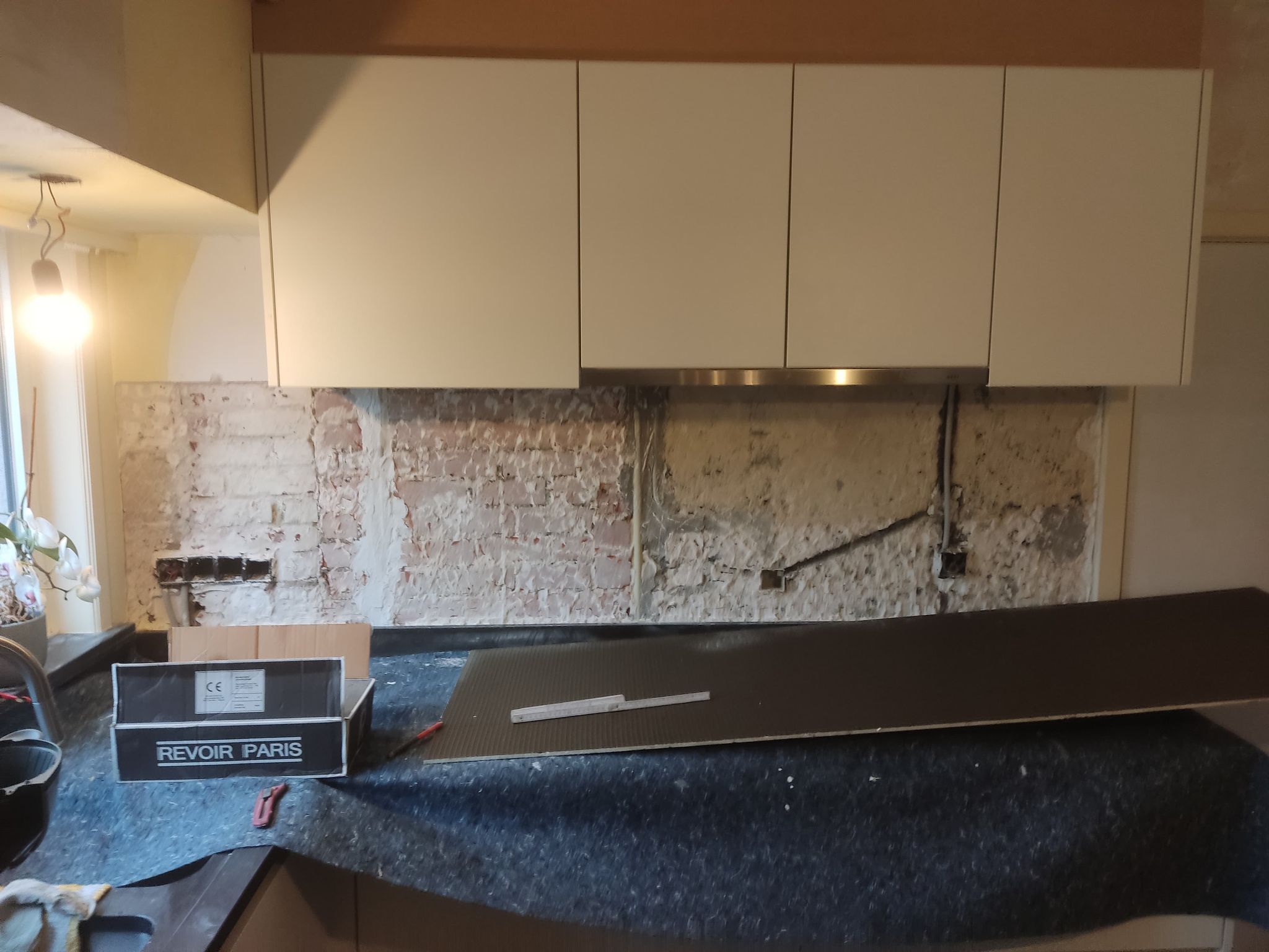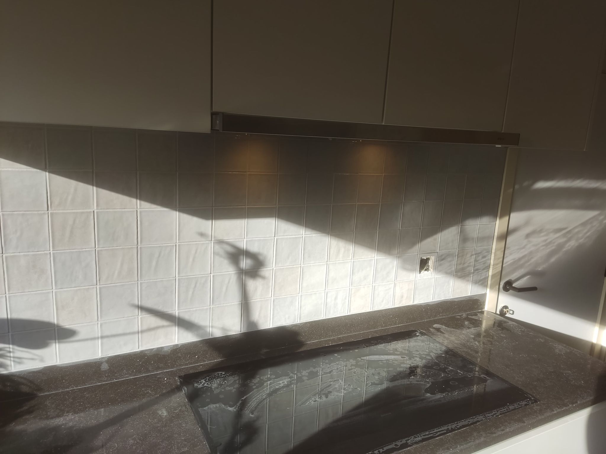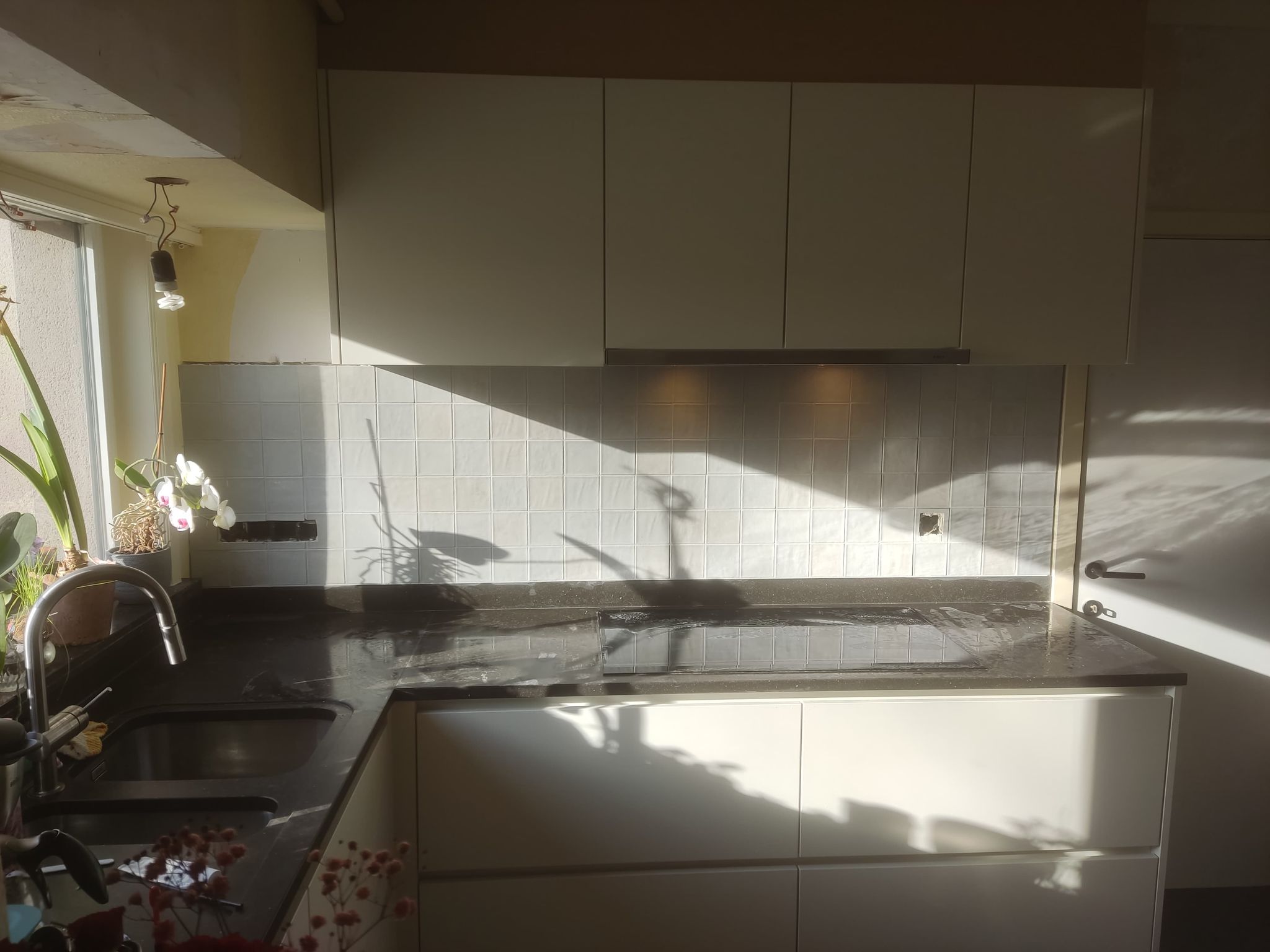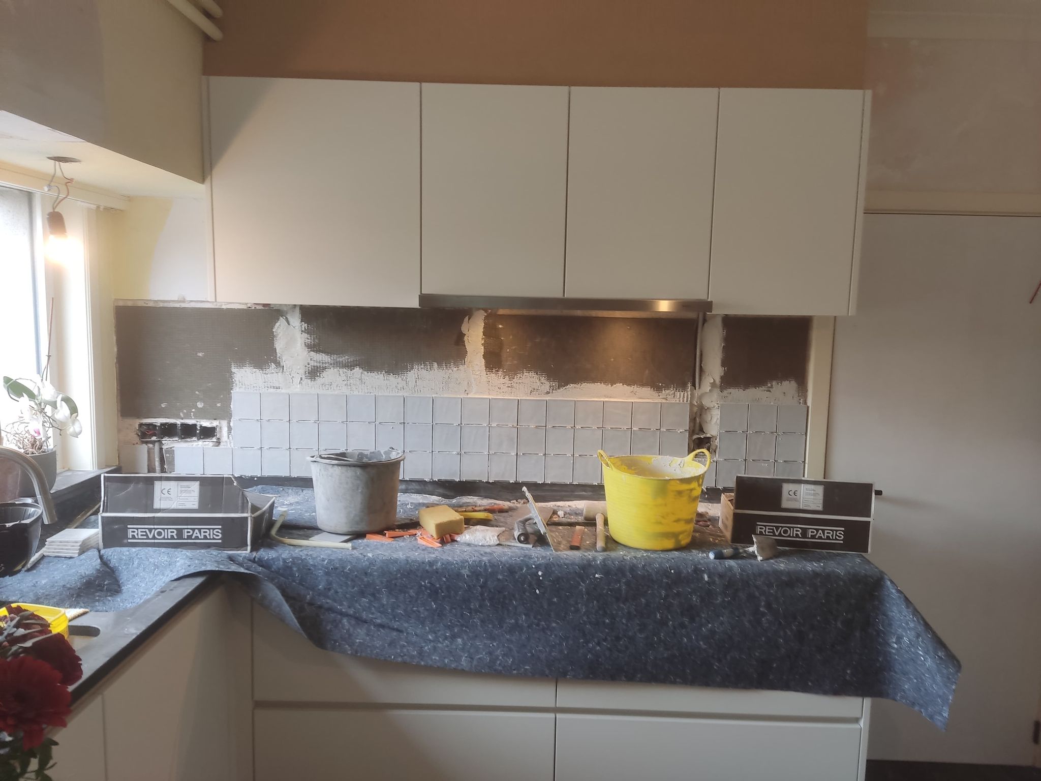 Hier vroegen de eigenaars om hun nieuwe keuken op te frissen met fiaencen van 10*10cm.