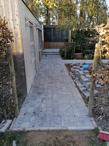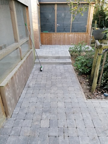 De eigenaar wilde af van zijn dolomiet en koos ervoor om blokken te leggen. Dit hebben we dan uitgevoerd en zorgt voor een proper resultaat. Nadien worden deze nog eens ingeveegd met kwartszand en verhard met seal joint. Hieronder zie je het resultaat: