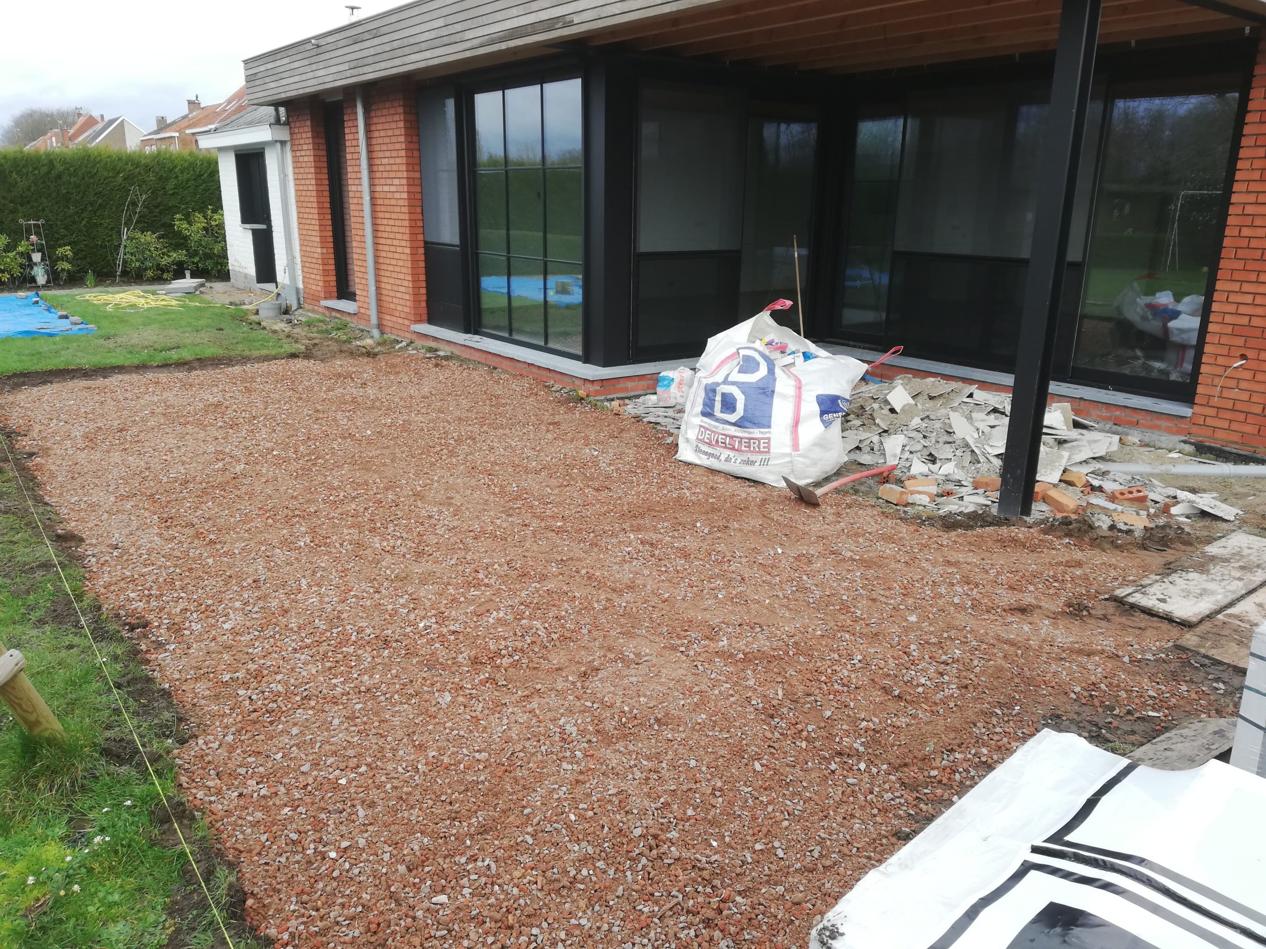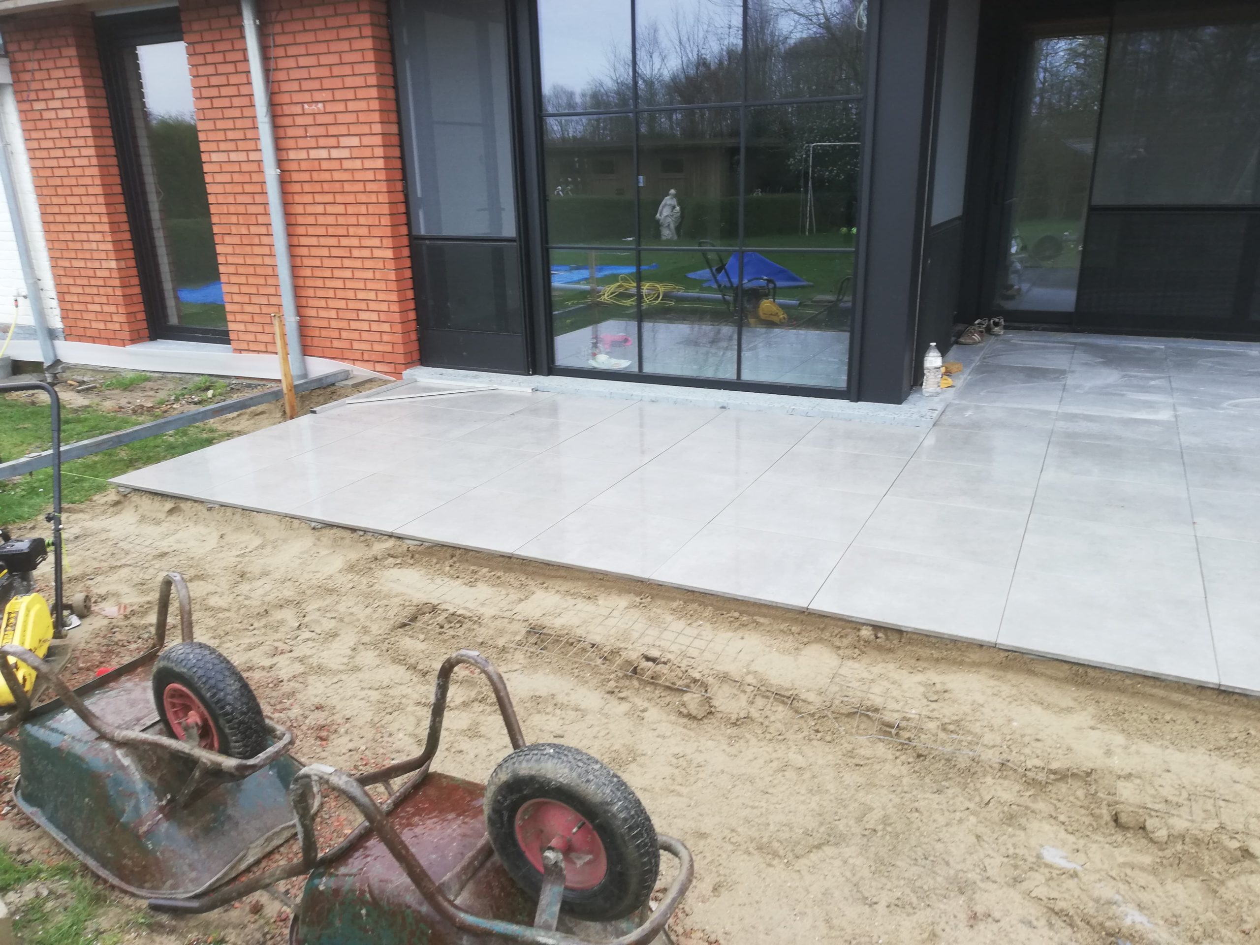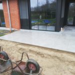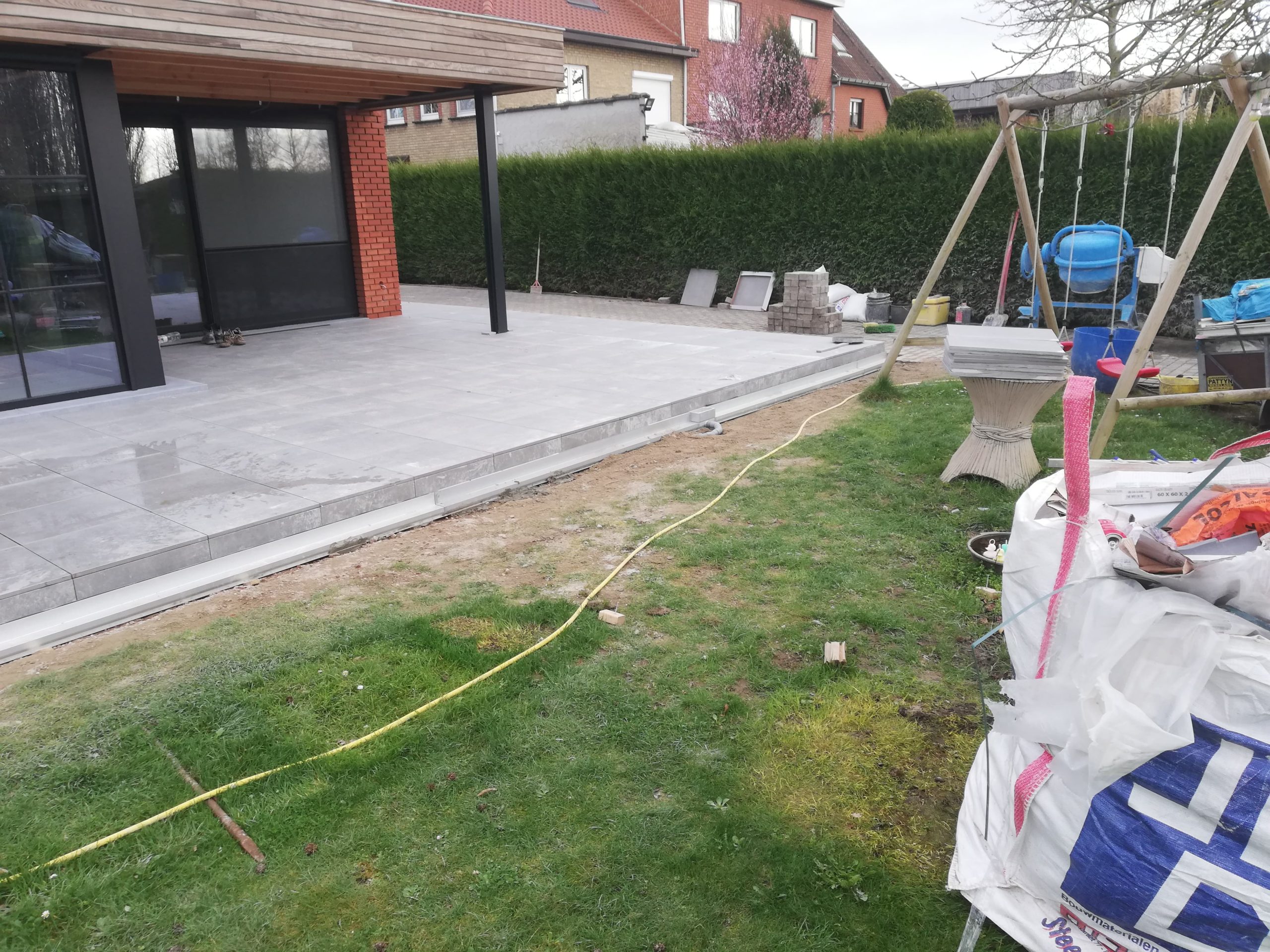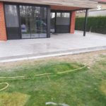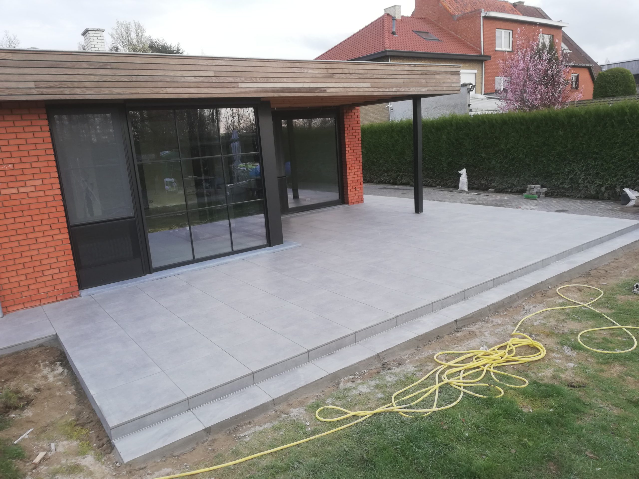 Nadat we de prachtige uitbouw van deze woning hadden gerealiseerd en binnen de keramische vloer verlijmd hadden, begonnen de buitenwerken van de woning. Hier zie je een strakke realisatie van een ruim terras met een keramische tegel van 60×60 cm. Op het einde van dit terras zit er een design gootje ingewerkt om het water op een snelle en efficiĆ«nte manier weg te leiden naar de riolering. Ook op zoek naar dergelijke eyecatcher? Neem dan contact met ons op voor een offerte op maat.